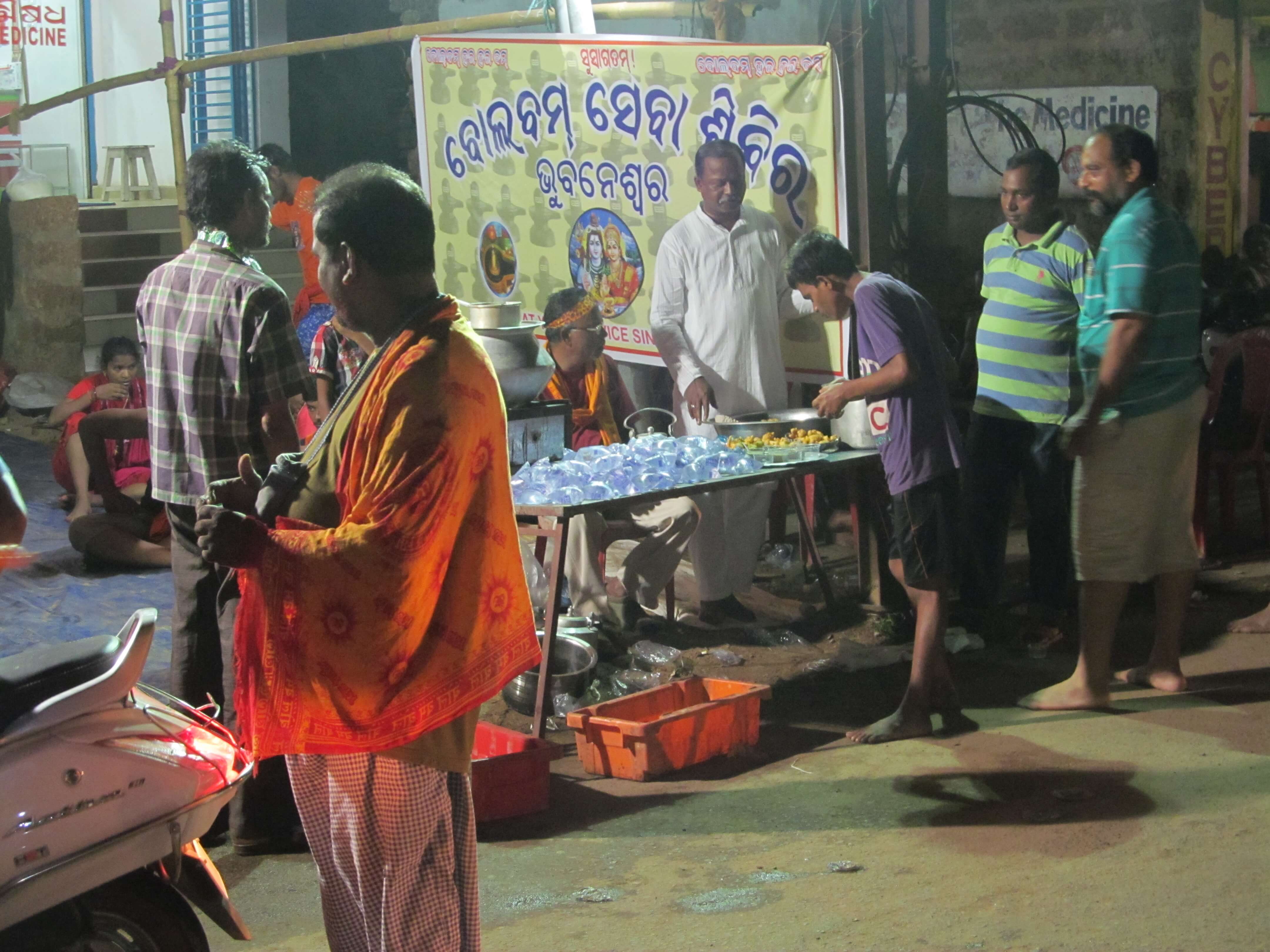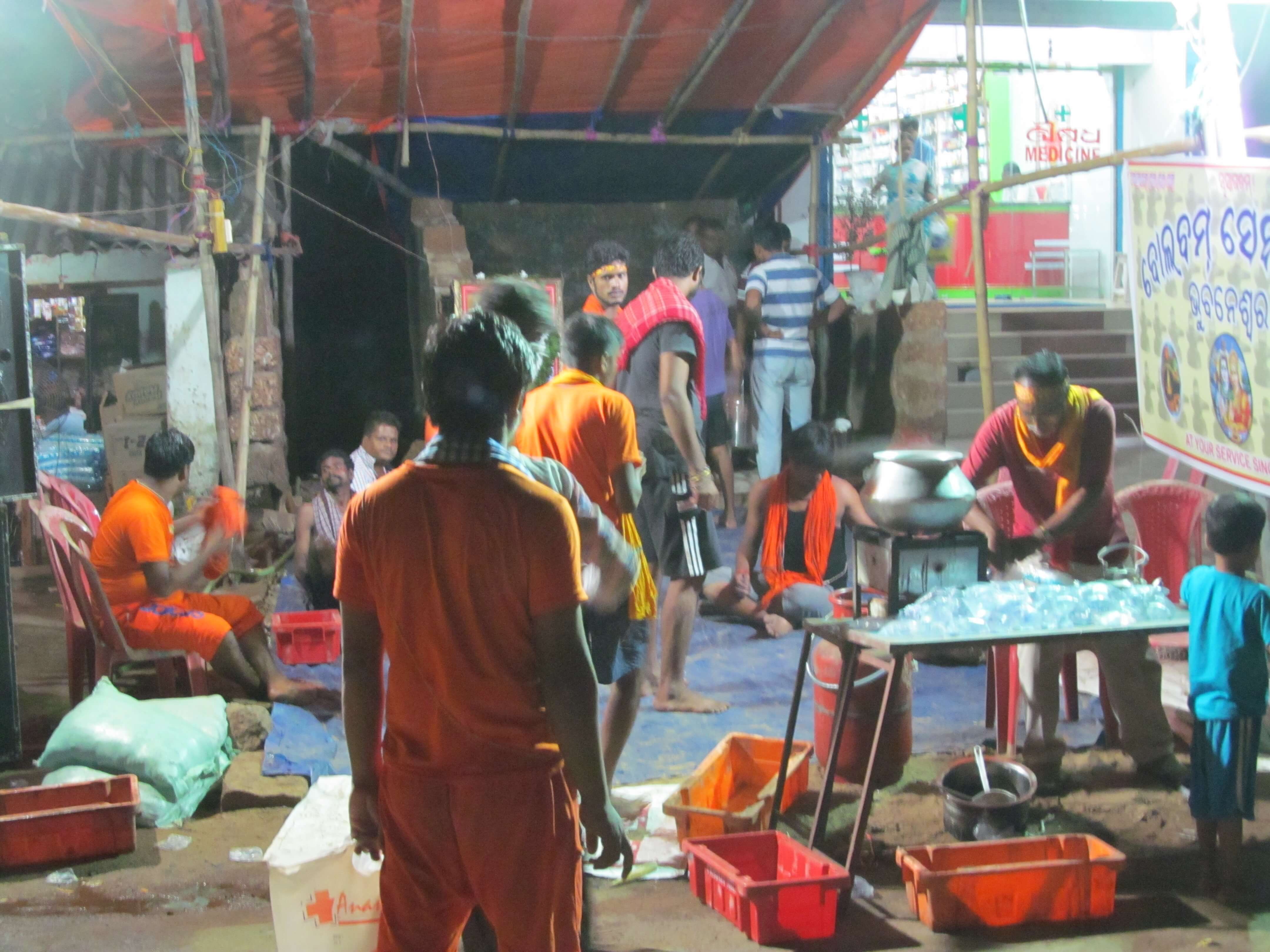 To help kaudias so many NGOs are there and they offer free sewa (service) like medical help, water, tea, breakfast, lunch etc. in the journey route. Likely, Sarala Rubber Stamp Works was organised a “Bol Bom Seva Camp/Sivira” at N.H.5, Rasulgarh Square for offering FREE services in terms of Drinking water pouch, Tea & Snacks, Pain balm, massaging to the tired pilgrims along with a group of local volunteers. Such Bol Bom Service Camps have been organised since 1982 as a welfare mission of the organisation.