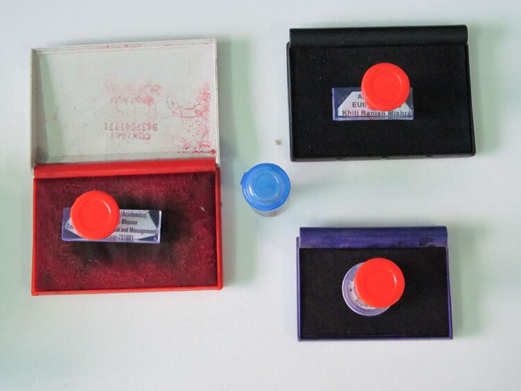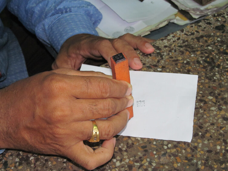 It is applied through Stamp Ink Pads in Violet, Black, Red and Green Colours as per the official combinations.