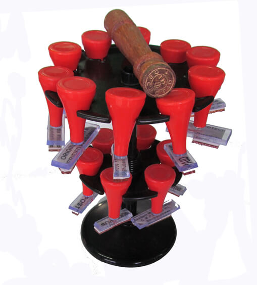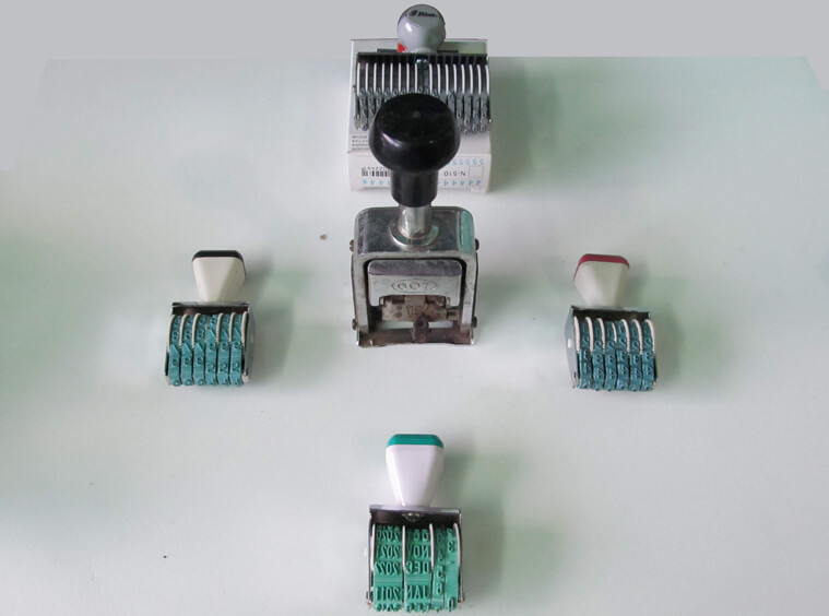 Different types of numbered stamps on display